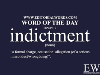 Today’s “Word of the Day” is indictment and it is a noun meaning “a formal charge, accusation, allegation (of a serious misconduct/wrongdoing)”. This […….]