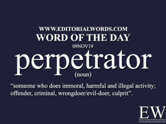Today’s “Word of the Day” is perpetrator and it is a noun meaning “someone who does immoral, harmful and illegal activity; offender, […….]