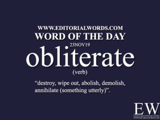 Today’s “Word of the Day” is obliterate and it is a verb meaning “destroy, wipe out, abolish, demolish, annihilate (something utterly)”. This […….]