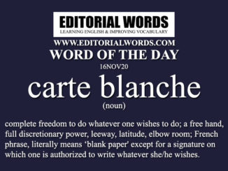 Today’s “Word of the Day” is “carte blanche“ and it is a noun meaning “complete freedom to do whatever one wishes to […….]