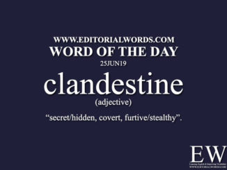 Today’s “Word of the Day” is clandestine and it is a adjective meaning “secret/hidden, covert, furtive/stealthy”. This word is present in today’s The Hindu front […….]