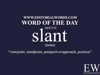 Today’s “Word of the Day” is slant and it is a noun meaning “viewpoint, standpoint, perspective/approach, position”. This word is present in […….]