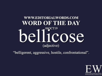 Today’s “Word of the Day” is bellicose and it is a adjective meaning “belligerent, aggressive, hostile, confrontational”. This word is present in […….]