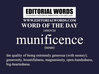 Today’s “Word of the Day” is “munificence“ and it is a noun meaning “the quality of being extremely generous (with money); generosity, […….]