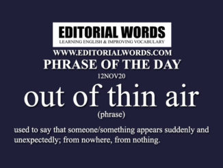 Today’s “Phrase of the Day” is “out of thin air” and it is a phrase meaning “used to say that someone/something […….]
