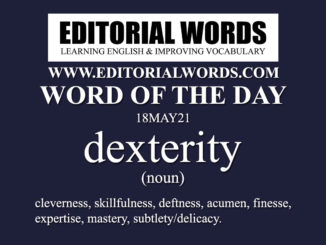 Today’s “Word of the Day” is “dexterity“ and it is a noun meaning “cleverness, skillfulness, deftness, acumen, finesse, expertise, mastery, subtlety/delicacy”. Example Sentence: Turkey […….]