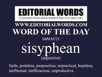 Today’s “Word of the Day” is “sisyphean“ and it is an adjective meaning “futile, pointless, purposeless, impractical, hopeless, ineffectual, inefficacious, unproductive“. Example […….]