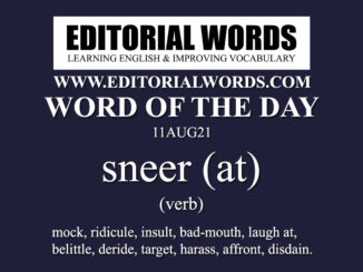 Today’s “Word of the Day” is sneer (at) and it is a verb meaning “mock, ridicule, insult, bad-mouth, laugh at, belittle, […….]